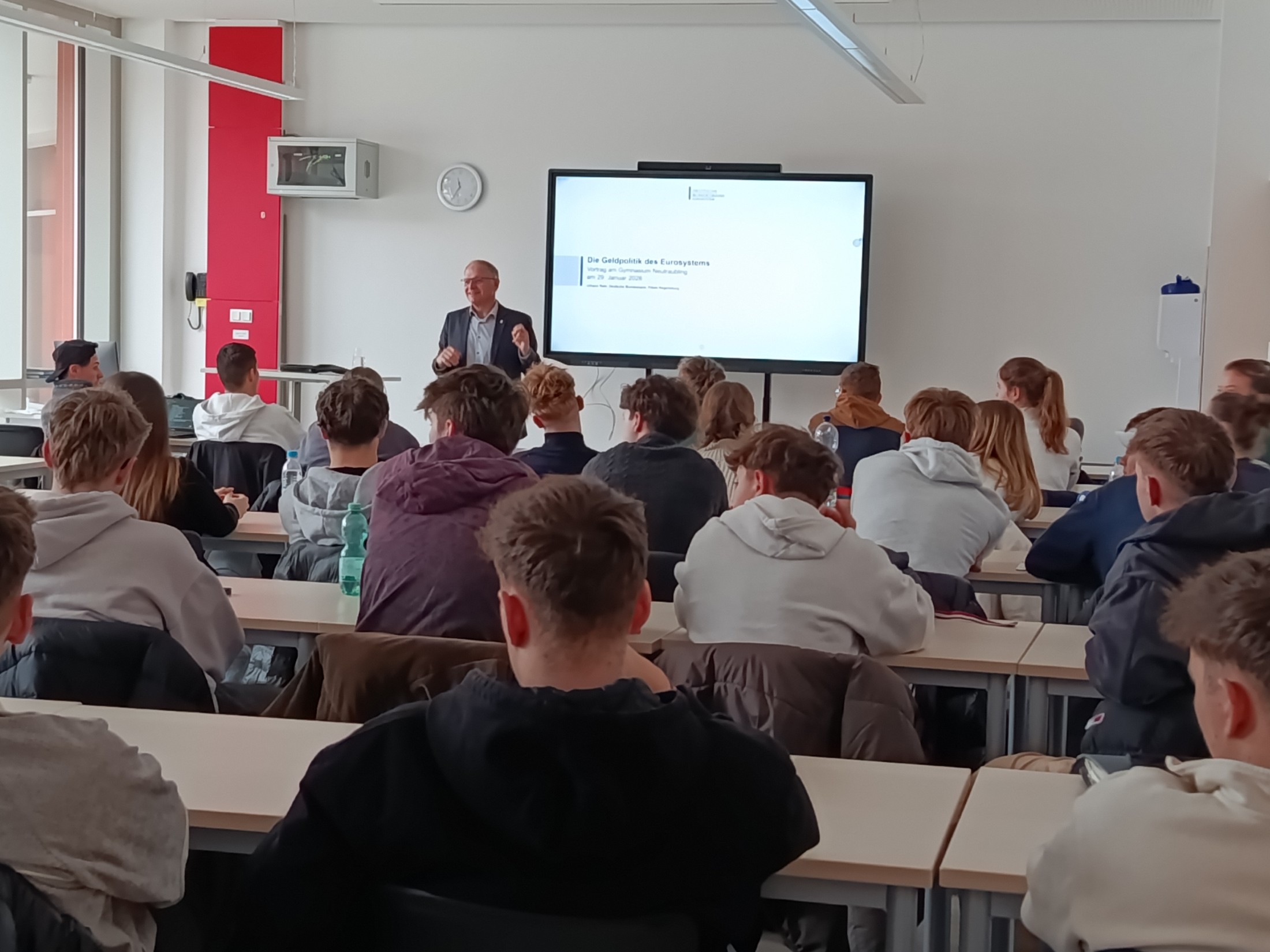 Am 4.12.2025 besuchte der Jugendoffizier der Bundeswehr, Hauptmann Dirk Klages, das Gymnasium Neutraubling und bot den Oberstufenschülerinnen und -schülern im Bereich Politik und Gesellschaft die Gelegenheit, sicherheits-, außen- und verteidigungspolitische Fragen aus erster Hand zu diskutieren.