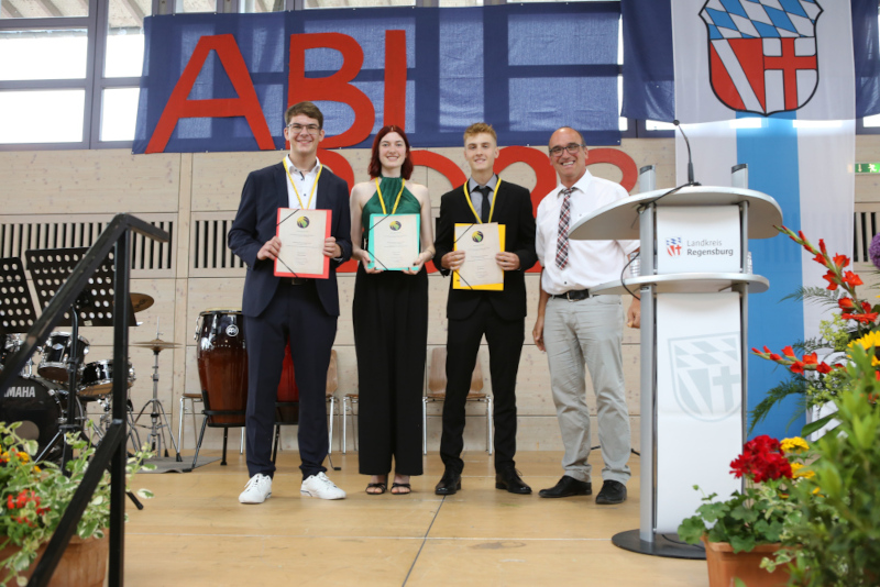 Bereits bei der Abiturfeier wurden die Umweltpreise überreicht. Diese Auszeichnungen gehen an Seminararbeiten aus den Themenbereichen Umwelt und Nachhaltigkeit. Aus den Seminaren der Fächer Geografie, Biologie und Physik wurden diesmal drei Arbeiten prämiert. Stiftungsvorsitzender Andreas Schnellbögl überreichte mit einer kurzen Ansprache je eine Urkunde, einen Büchergutschein im Wert von 100€ und eine vom Künstler Olafur Eliasson entworfene Solarlampe.